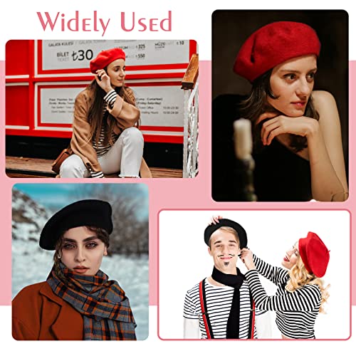 2 Pezzi Basco per Donna Rosso e Nero Cappello da Artista di Lana, Taglia Unica