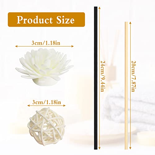 【Decorare Elegante & Lussuosa】 Il set di reed diffusores sticks per ambienti non solo può essere utilizzato per diffondere profumi, ma è anche un'ottima decorazione! Oltre al bastoncino in rattan nero, ti offriamo anche decorazioni in fiore in rattan e palline di rattan, puoi mescolare e abbinare liberamente e sono anche belle come decorazioni!