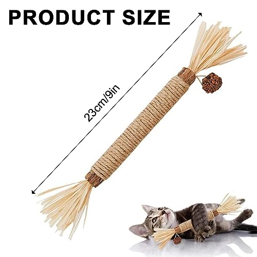 ️ La confezione include: Riceverai 5 bastoncini da masticare per gattini, fatti di frutta fiele, vite d'argento, buccia di mais e corda di canapa.