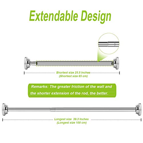 GQC 2 Pezzi Bastone per Tenda Regolabile Asta Tenda Doccia, lunghezza regolabile65cm-100cm Senza Fori in Acciaio Inossidabile Resistente per Bagno, Armadio, Balcone, Cucina,Finestre o Porte