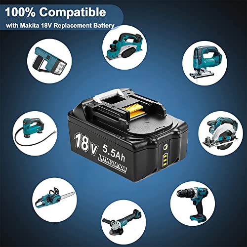 2 Pezzi 5.5Ah Batteria per Makita 18V BL1860B BL1850B BL1860 BL1830B BL1830 BL1840B BL1840 BL1835 BL1845 BL1850 194205-3 LXT-400 con Display a LED
