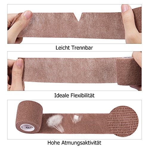 6 pezzi Benda Bende adesive coesive COLORI DELLA PELLE Benda elastica SCURA 5 CM Larghezza 4,5 M Lunghezza per dita, mano, dita dei piedi, piedi senza colla, toppe per le dita