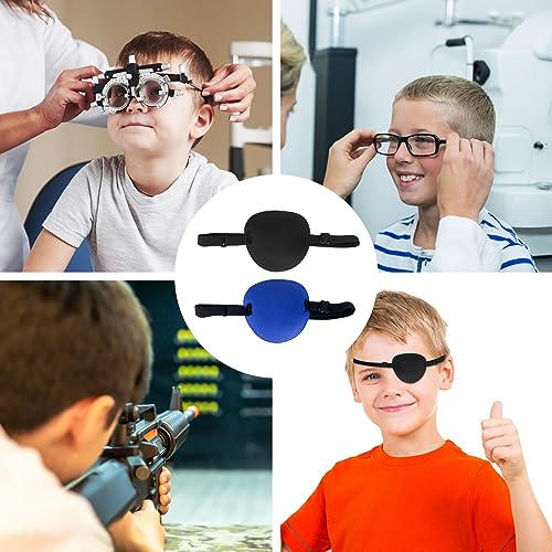 2 Pezzi Benda Occhio, Bende per Occhi Regolabili con Fibbia Bende, 3D Occhio per L'amliopia e lo Strabismo per L'addestramento di Bambini Adulti Occhio Sinistro e Occhio Destro (Blu, Nero)