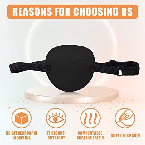 Cintura regolabile: il cinturino può essere regolato in 30-55 cm.Puoi regolare la lunghezza in base alle tue esigenze.Ogni patch per gli occhi misura circa 7,5 x 7 cm, adatto sia per adulti che per bambini, sia occhio sinistro che a destra.