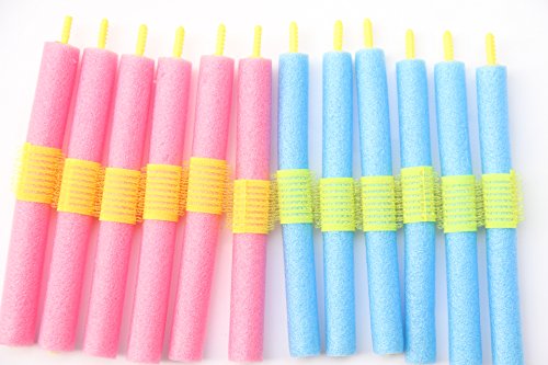 12 pezzi Bendy Hair Rollers Bendanti morbidi di schiuma Twist Curls Flex Rods, fai da te Styling Tool, Blue + Pink