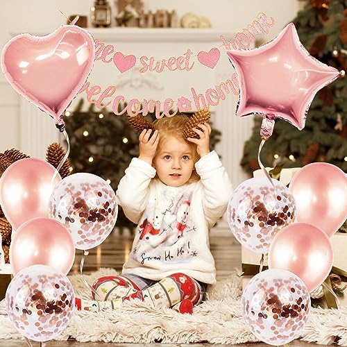 【Pacchetto di valore】 Riceverai 1 striscioni, benvenuto a casa . 2 cuori d'amore e palloncini a 2 stelle, 10 palloncini in lattice, 1 nastro 10M. Quantità abbondante per soddisfare le tue esigenze di decorazione.