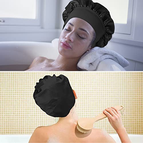 3 Pezzi Berretto da Notte Raso Elastico, VEGCOO Banda Larga Seta Cuffia per Capelli Traspirante Dormire Cappello, Regolabile Cappuccio in Raso per Donne Ragazza Capelli Ricci Cura (C)