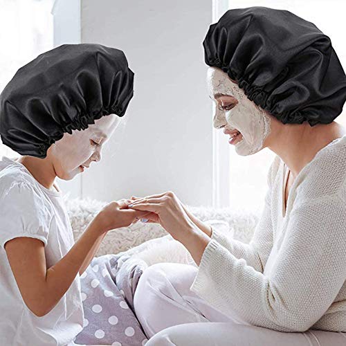 BKJJ 4 Pezzi Berretto da Notte in Raso Setoso, Berretto da Notte, Notte Elastica Regolabi, Cuffia per Dormire in Raso, con Cappuccio per Capelli da Donna Copricapo da (Nero/Cachi)