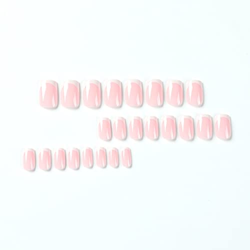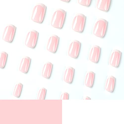 24 Pezzi Bianco French Tip Premere sulle unghie, rosa unghie false lucido quadrato unghie finte piena copertura Stick on Nails per le donne e le ragazze di usura quotidiana