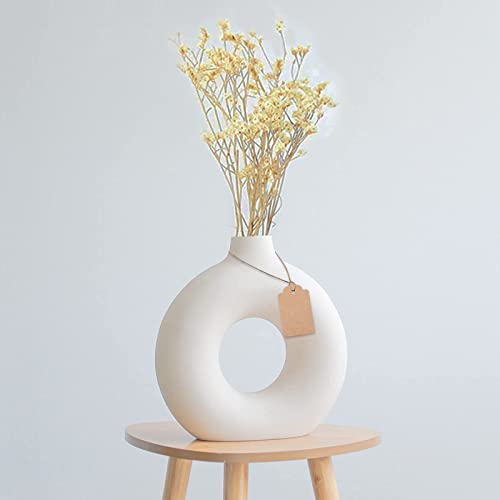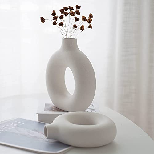 ◎【Materiale ceramico】Vaso donut bianco moderno è realizzato in materiale ceramico di alta qualità, fatto a mano, calcinato ad alta temperatura, più resistente alle screpolature e alla corrosione, vaso bianco ceramica ha una texture opaca.