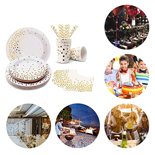 [Design Elegante]: Con uno sfondo bianco impreziosito da pois dorati, è elegante e sofisticato, può essere perfettamente abbinato a qualsiasi stile di festa, aggiungere un tocco di stile alla festa, elevare la tua festa e far divertire i tuoi ospiti piacevole cena.