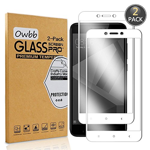 Owbb [2 Pezzi Bianco Vetro Temperato Pellicola per Xiaomi Redmi 4X Full Coverage Protettiva Protezione 9H Durezza 99% Alta Trasparente ...