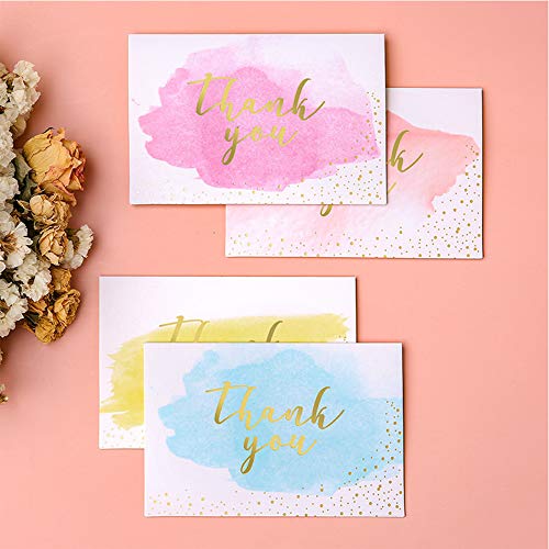 CINY 42 Pezzi Biglietti di Ringraziamento, con Lamina Dorata, con Buste, per Matrimoni, Feste di Nozze, Anniversari, Baby Shower, Laurea, Affari, Vacanze, Confezioni Regalo, 6 Motivi