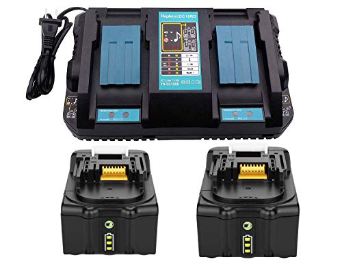 YASI MFG® per 2 pezzi 18 V 5,0 Ah 5000 mAh BL1850B LED batteria compatibile con Makita BL1830 BL1840 BL1850 & caricatore 7.2 V-18 V Li-ion DC18RA DC18RC DC18RD, 18.0V
