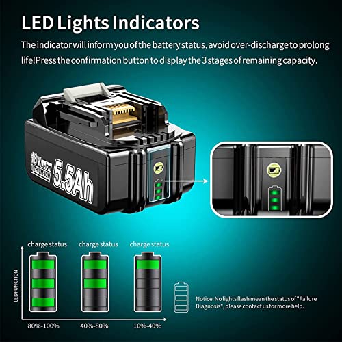 2 Pezzi 18V 5.5Ah BL1860B Batteria di Ricambio per Makita Batteria 18V Compatibile con BL1860B BL1860 BL1850B BL1850 BL1845B BL1845 BL1840B BL1840 BL1830B BL1830 BL1835B BL1835 194204-5 LXT-400