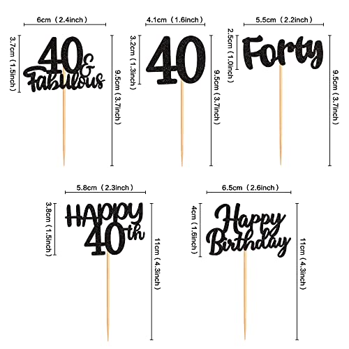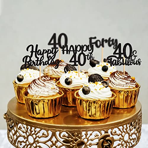40 pezzi Black Glitter 40° Compleanno Cupcake Topper 40° Compleanno Party Cupcake Topper Picks per Ragazze Ragazzi Teen Party Compleanno Party Decorazione
