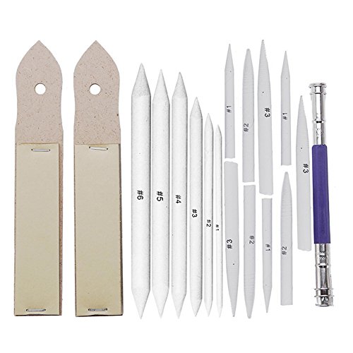15 pezzi di blending Stump e Tortillions Set con 2 pezzi di carta vetrata temperamatite e 1 pezzo di matita strumento di estensione per lo studente disegno schizzo