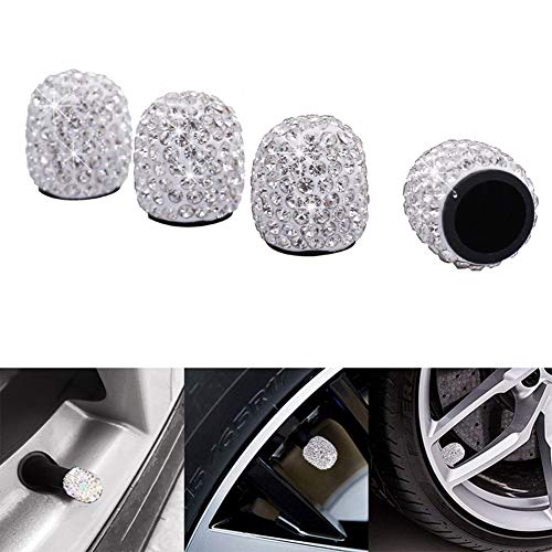 4 Pezzi Bling Bling Tappi Valvola Pneumatico,MoreChioce Tappi Valvola Universale Con Portachiavi In Lega Di Cristallo Tappi Stelo Valvola Pneumatico Moto Auto,Bianca