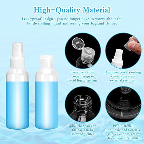 【Materiale Premium】Le nostre contenitori viaggio da 100 ml sono realizzate in plastica PET di alta qualità, resistente alla corrosione, non tossica, inodore, durevole, sicura, ecologica e riutilizzabile, quindi puoi usarle a lungo con sicurezza.Il design della bottiglia trasparente mostra il vero colore del liquido, permettendoti di identificare facilmente residui e contenuto!