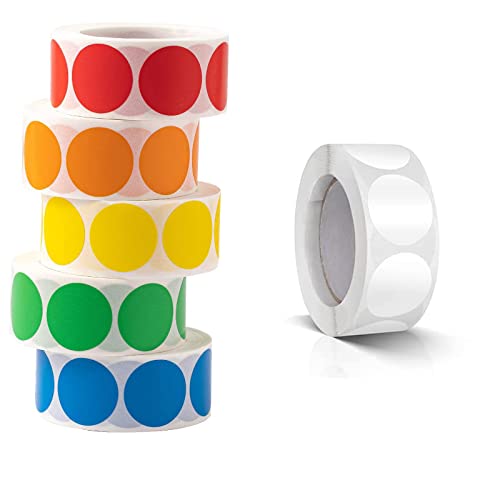 【Contenuto di quantità】 Il pacchetto contiene 6 rotoli di adesivi rotondi (rosso, arancione, giallo, viola, verde, blu) con 500 fogli ciascuno. Un totale di 3000 adesivi rimovibili rotondi.