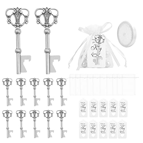 10 Pezzi Bomboniera Antico Chiave Apri di Bottiglia, Matrimonio Decorazioni Accessori Segnaposto Battesimo Cresima Regali di Anniversario (Argento Antico-E)