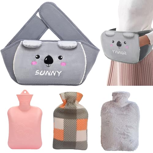 4 Pezzi 3 in 1 Borsa Dell'acqua Calda, Borsa Acqua Calda Peluche da 1L, Borse Acqua Calda per Dolori e Febbre, Borsa Acqua Calda Peluche Animali, Per Collo e Spalle, Schiena, Gambe, Vita Calda