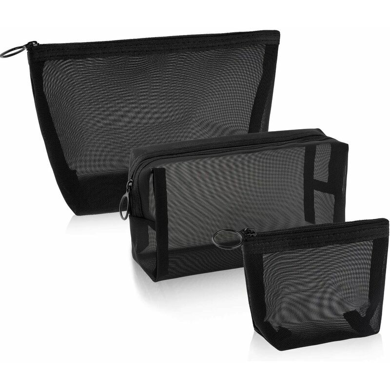 VARIE DIMENSIONI: riceverai 3 diverse dimensioni di borse cosmetiche che puoi utilizzare per scopi diversi per soddisfare le tue diverse esigenze quotidiane. Design: questa borsa a rete è progettata per essere trasparente, puoi direttamente guarda il contenuto all'interno, risparmiando tempo per trovare gli oggetti e ha anche una cerniera per evitare che gli oggetti cadano Facile da trasportare: cerniera superiore con chiusura a cerniera, facile accesso, traspirante e facile da pulire, leggero, facile da trasportare, adatto da mettere in borsa o in valigia. MATERIALE PREMIUM: La borsa a rete è realizzata in rete di nylon, pratica e traspirante, e utilizza materiali durevoli per assicurarti di usarla a lungo tempo Applicazione: può essere utilizzato come trousse per cosmetici, astuccio, portamonete e borsetta, custodia da viaggio, ecc. per la tua comodità nella vita quotidiana