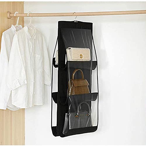 FDDD 2 Pezzi Borsa Organizzatore Armadio, Organizer Da Appendere Alla Borsa, Organizer per Borsette Da Appendere, 6 Tasche, Antipolvere, per Borsetta per Borse Soggiorno, Camera Letto (Nero+Grigio)