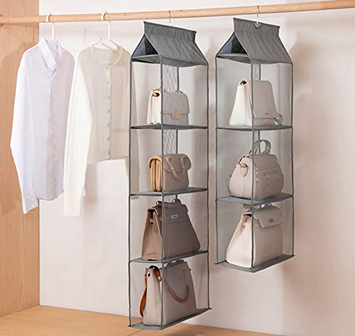 DXIA 2 Pezzi Borsa Organizzatore Armadio, Armadio Staccabile Borse Organizer con 4 Tasche Traspiranti Storage Bag, Porta Borse da Armadio, Storage Bag Organizer per Soggiorno Camera da Latto la Casa