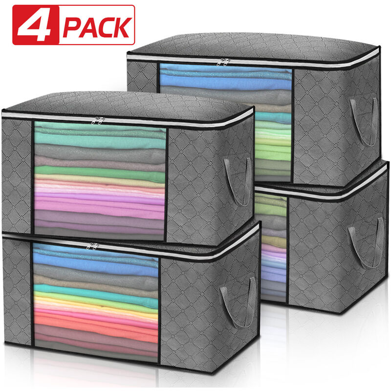 Contenuto della consegna: 4PCS sacchetti per la conservazione dei vestiti Specifiche dell'articolo: Peso del prodotto: 1,76 libbre Materiale: Pile + PVC Colore: Grigio Dimensioni del prodotto: 60 x 43 x 35 cm Caratteristiche: MATERIALE DUREVOLE AGGIORNATO】 Il nostro organizzatore di indumenti è realizzato in tessuto non tessuto di alta qualità, inodore, a tre strati, che favorisce la ventilazione e protegge i tuoi oggetti riposti. Offriamo sacchetti di stoccaggio senza polvere per 4 capi in un unico set. Quindi vale la pena portare queste grandi borse a casa vostra per i vostri vestiti, coperte, piumoni, cuscini e biancheria da letto. RAFFORZARE LA DOPPIA MANIGLIA】 Questa volta, queste borse di stoccaggio sono cucite con tre strati di tessuto spesso che possono sopportare carichi di circa 30 kg. Quindi non si strappa quando si sposta o solleva queste borse per riporre i vestiti. GRANDE DIMENSIONE 23,6 x 16,9 x 13,7 pollici】. La nostra borsa di stoccaggio misura 60 x 43 x 35 cm, il che