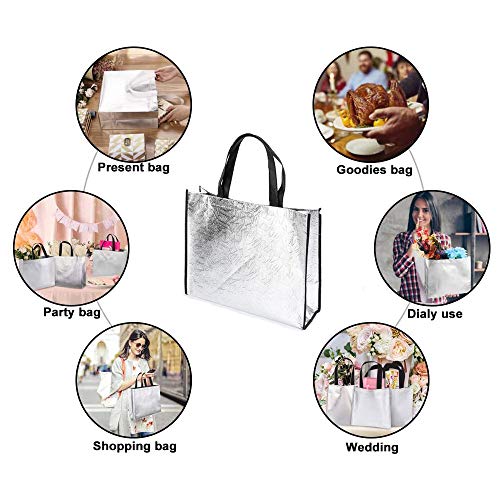 10 Pezzi Borsa Shopping Non Tessuta, Borsa Non Tessuta,Borsa Tote in Tessuto Non Tessuto,Adatto per Compleanni, Feste, Picnic, Festival, Matrimoni, Shopping (Oro, Argento)
