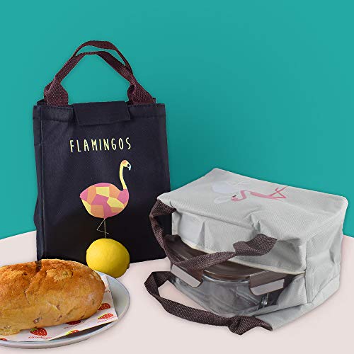 2 Pezzi Borsa Termica Plegable Porta Borsa Frigo Pranzo Piccola Scuola Picnic Ufficio Alimenti (Nero+Grigio)