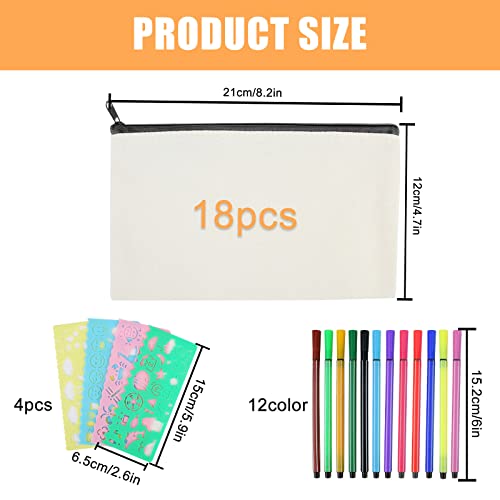 18 Pezzi Borsa da Trucco Cosmetica Vuota,Astuccio per Matite Fai Da Te,Astuccio in Tela Bianco,Astuccio per Matite Vuoto,Astuccio in Tela con Cerniera,Pochette Tela per Pittura Scuola Viaggi 21 x 12cm