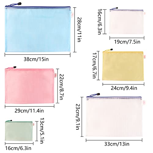 12 Pezzi Borse per Documenti con Cerniera Colorata, Borsa in Rete Impermeabile Trasparente Borsa con Cerniera in PVC per Forniture per Ufficio Scolastico Accessori da Viaggio Cosmetici, 6 Dimensioni