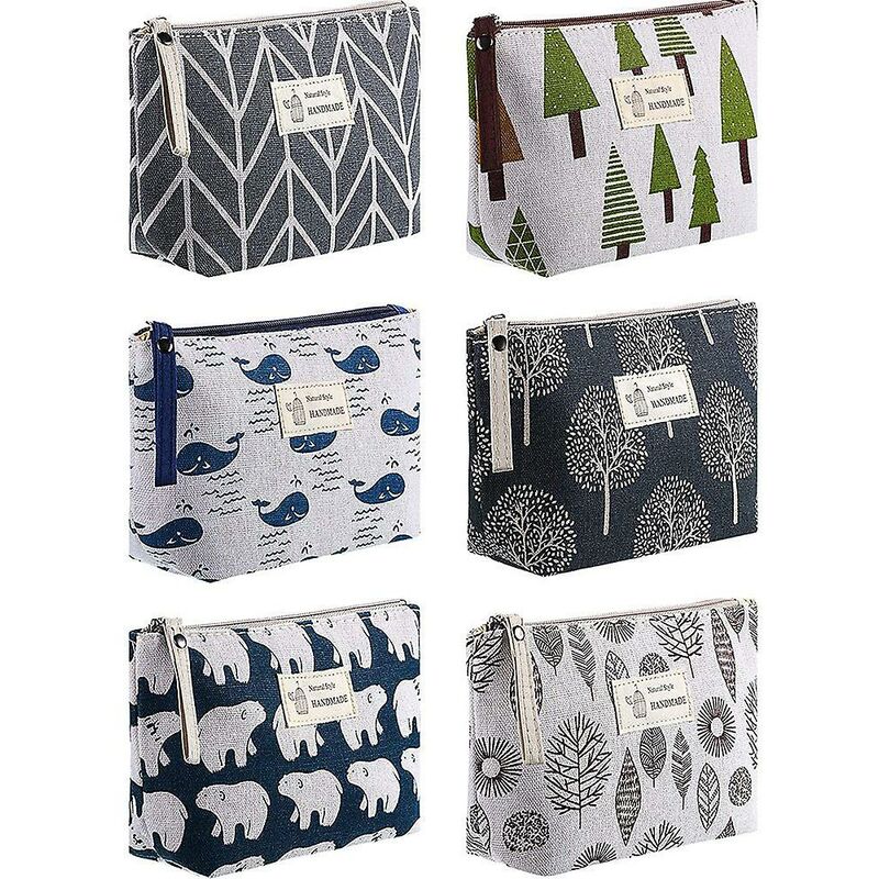 Set di borse per cosmetici in tela: riceverai 6 sacchetti per cosmetici in tela stampati in vari stili, modelli squisiti e quantità sufficienti in grado di soddisfare le tue esigenze quotidiane, convenienti per viaggiare con i cosmeticiBorse per il trucco multiuso: le borse per il trucco con cerniera non possono ti aiuta solo a riporre pennelli da trucco, rossetti, matite per sopracciglia e così via, ma può anche essere applicato come portamonete, astucci per carte, astucci per matite, astucci per chiavi e altro cose ordinate e pulite;