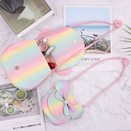 2 Pezzi Borsetta per Bambini, Jolintek Bowknot Borsa Tracolla Ragazze Borsa Messenger Grande + Piccolo, Borsetta da Principessa per Bambina(Colorato)