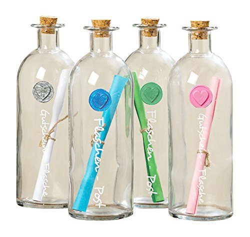 Questa divertente bottiglia ha un' altezza di circa 21 cm, Vetro trasparente con cuore sigillo in 4 diversi colori
