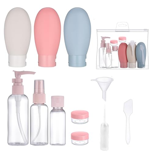 12 Pezzi Bottiglie da Viaggio,Flaconi da Viaggio in Silicone a Prova di Perdite con Borsa,Set da viaggio portatile per Shampoo Bagnoschiuma Liquidi Lozione