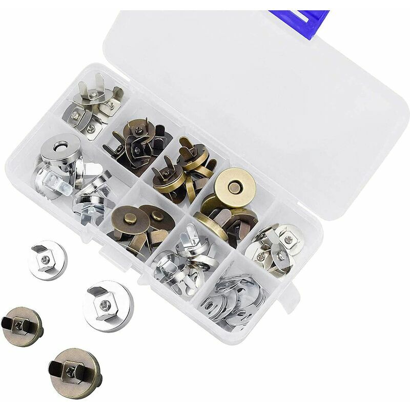 Robusto magnete in lega di ferro: la superficie lucida è delicata e lucida, non facile da sbiadire e ha una lunga durata.Questi fermagli magnetici per bagagli sono durevoli e possono ottenere un effetto sigillante infallibile. ?2 diversi colori: il la serratura magnetica ha 2 diversi colori tra cui scegliere: bianco argento e bronzo, che possono soddisfare le tue diverse esigenze.È dotato di una scatola di plastica per la conservazione senza ulteriori acquisti.< br/>?QuantitàDimensioni: contiene 20 pulsanti magnetici di diversi dimensioni, con dimensioni di 14 mm e 18 mm, che sono molto adatte per piccole imbarcazioni. ?Facile da usare: un set di fibbie magnetiche include una fibbia maschio + una fibbia femmina Due sigilli.Basta tirare il sigillo attraverso il materiale intrecciato e piegalo, è facile da allacciare e allentare.,Ampia gamma di applicazioni: molto adatto per cucire vestiti, cucire produzione artigianale fatta a mano. n, sigillatura bagagli, scrapbooking, portafogli