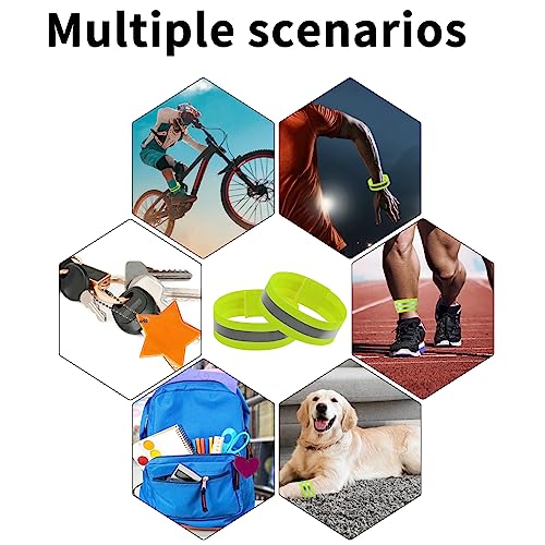 【Praticità e stabilità】 Le fasce riflessione di sicurezza sono molto elastiche e hanno una forte adesione. Puoi fissarle intorno ai polsi, alle caviglie, alle braccia, alle gambe, ecc. Allo stesso tempo, le etichette riflettenti possono essere attaccate a uno zaino o a una borsa.