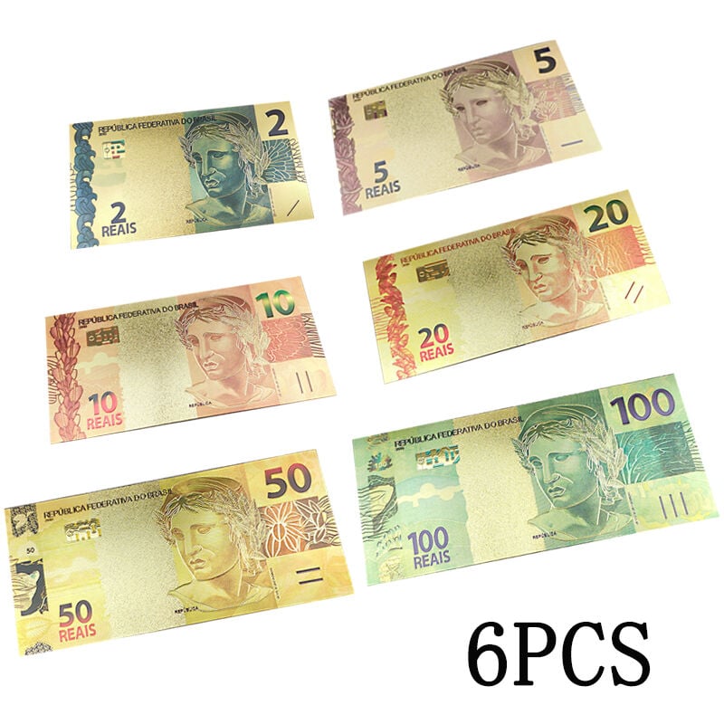 6PCS Brasile Banconote 2/5/10/20/50/100 Lamina D'oro Delle Banconote Replica Raccolta di Denaro di Natale nuovo Anno del Regalo Souvenir Decorazione Di Halloween