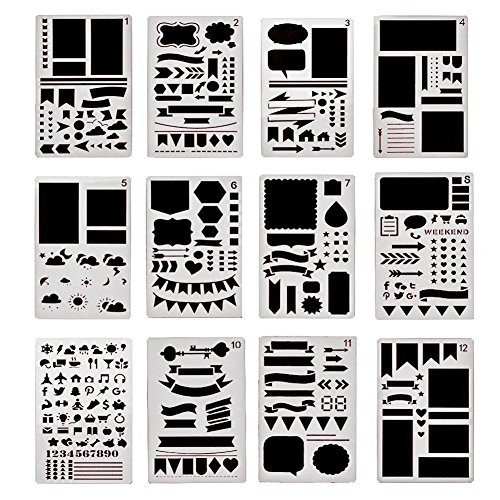 12 pezzi Bullet Gazzetta stencil set diversi motivi plastica planner DIY disegno template 10,2 x 17,8 cm pittura stencil per diario scrapbooking e progetti d' arte