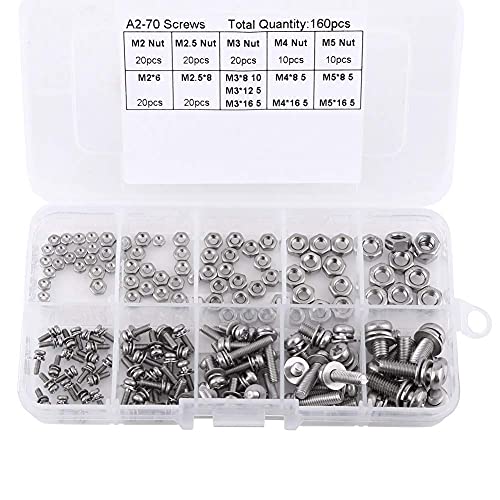 160 pezzi di bulloneria e dadi Set di Viti a testa bombata con impronta a croce Kit in acciaio inox 304 Kit di assortimento di dadi M2 M2.5 M3 M4 M5