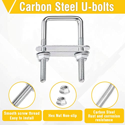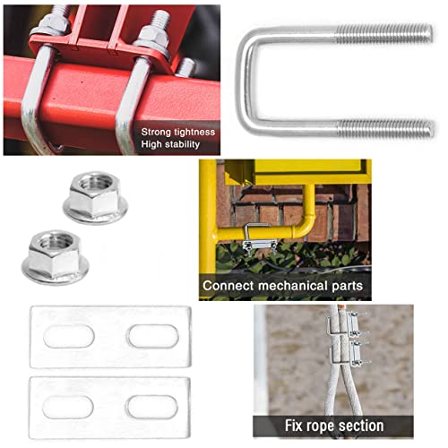 2 Pezzi Bulloni M10 Bulloni a U 100 x 100 mm Bullone a U Quadrati Bulloni U con Dado Flangiato e Piastra Acciaio Inox 304 Per Tubo Dell'Acqua Fisso