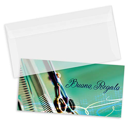 25 pezzi buoni regalo DIN lunghi + 25 buste per parrucchiere, barbiere, studio da parrucchiere e stilista del capello K9286IT