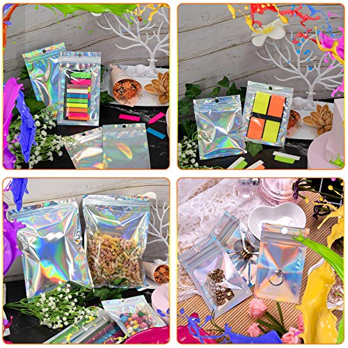 BQTQ 150 Pezzi Busta in Alluminio Richiudibile Borsa a Chiusura Lampo Piatta, Olografico, 13x21cm