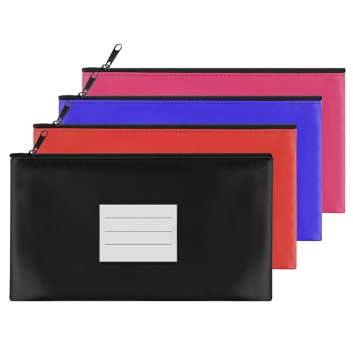4 Pezzi Busta Porta Soldi, Cartelle con Cerniera in PU, Pochette Portadocumenti, Busta Porta Documenti A5, Impermeabili Borsa Porta Soldi con Cerniera per Cosmetici, Denaro Contante, Monete