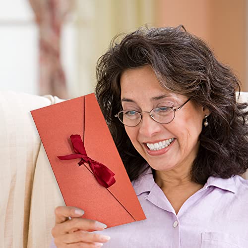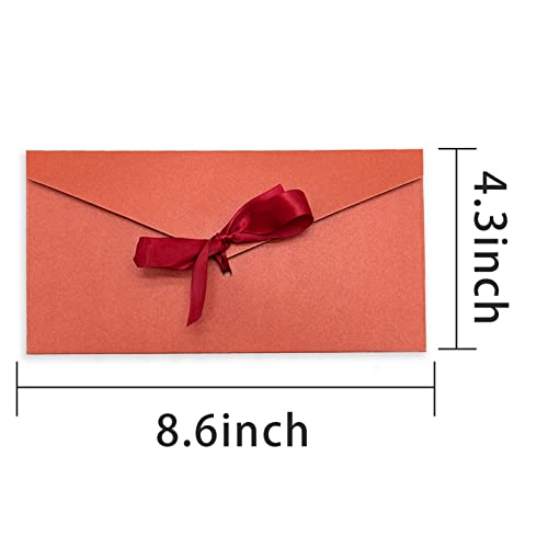 10 pezzi Buste Carta Kraft Nastro, Buste Lettere per Partecipazioni Matrimonio 20 x 11 cm, Rosso