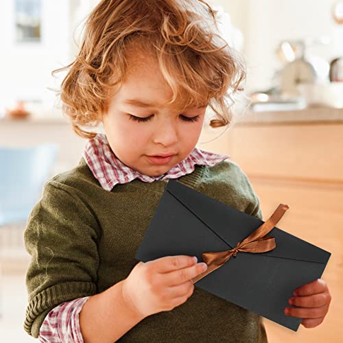10 pezzi Buste Carta Kraft Nastro, Buste Lettere per Partecipazioni Matrimonio 20 x 11 cm, Nero