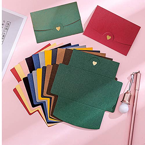 20 Pezzi Buste Colorate, Mini Buste, Busta di Carta Perlescente, Retro Buste Creative con Chiusura a Forma di Cuore per Cartoline, Matrimoni, Carte Regalo Fai Da Te, Natale San Valentino(4 Colori)